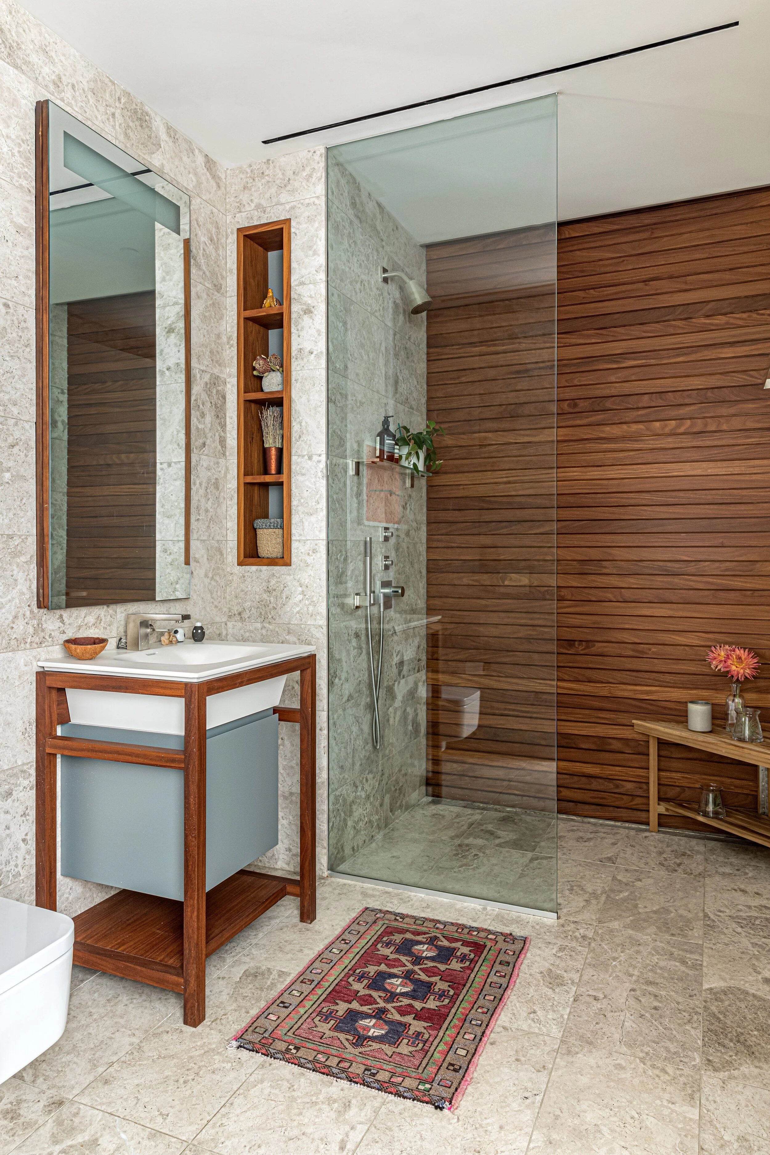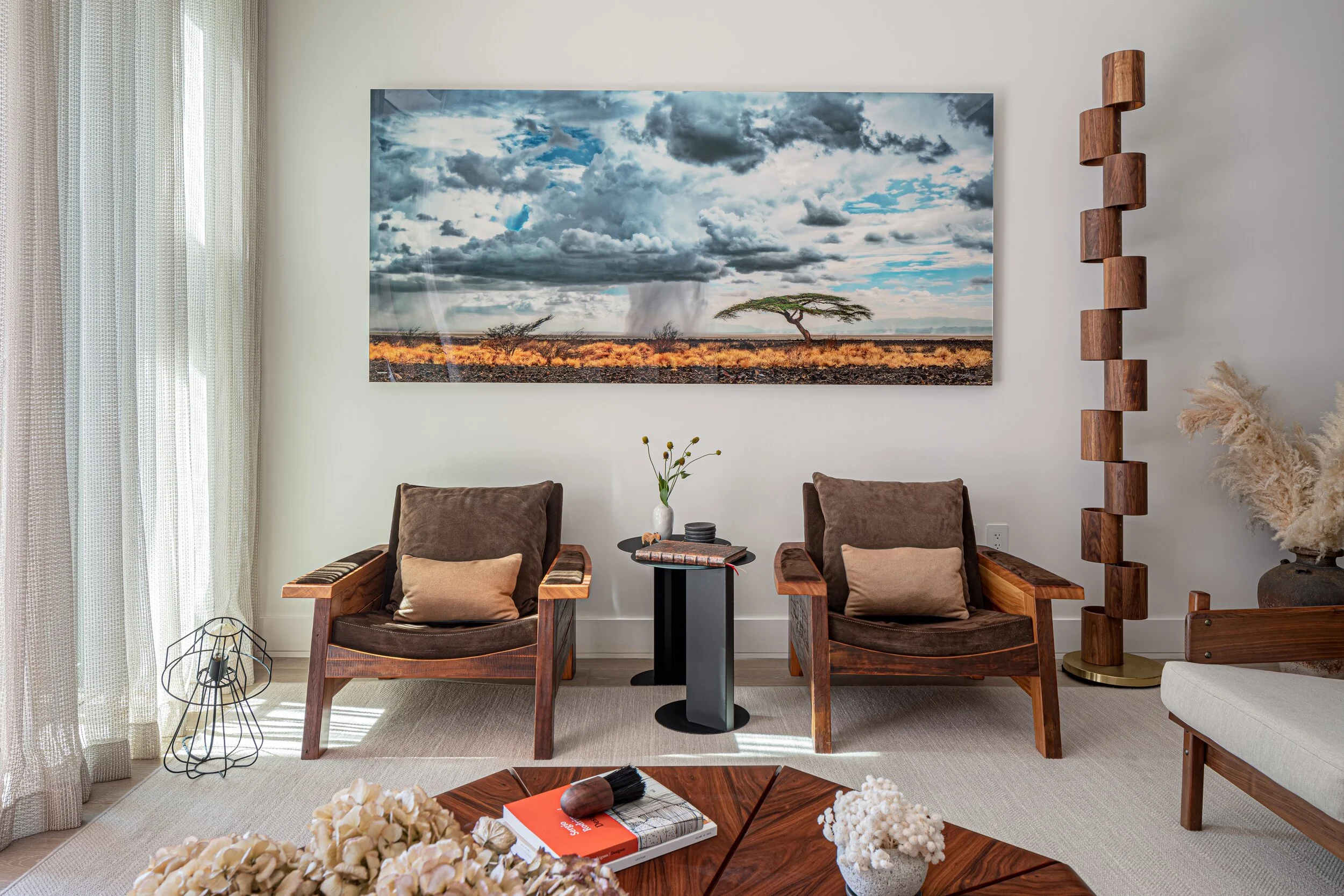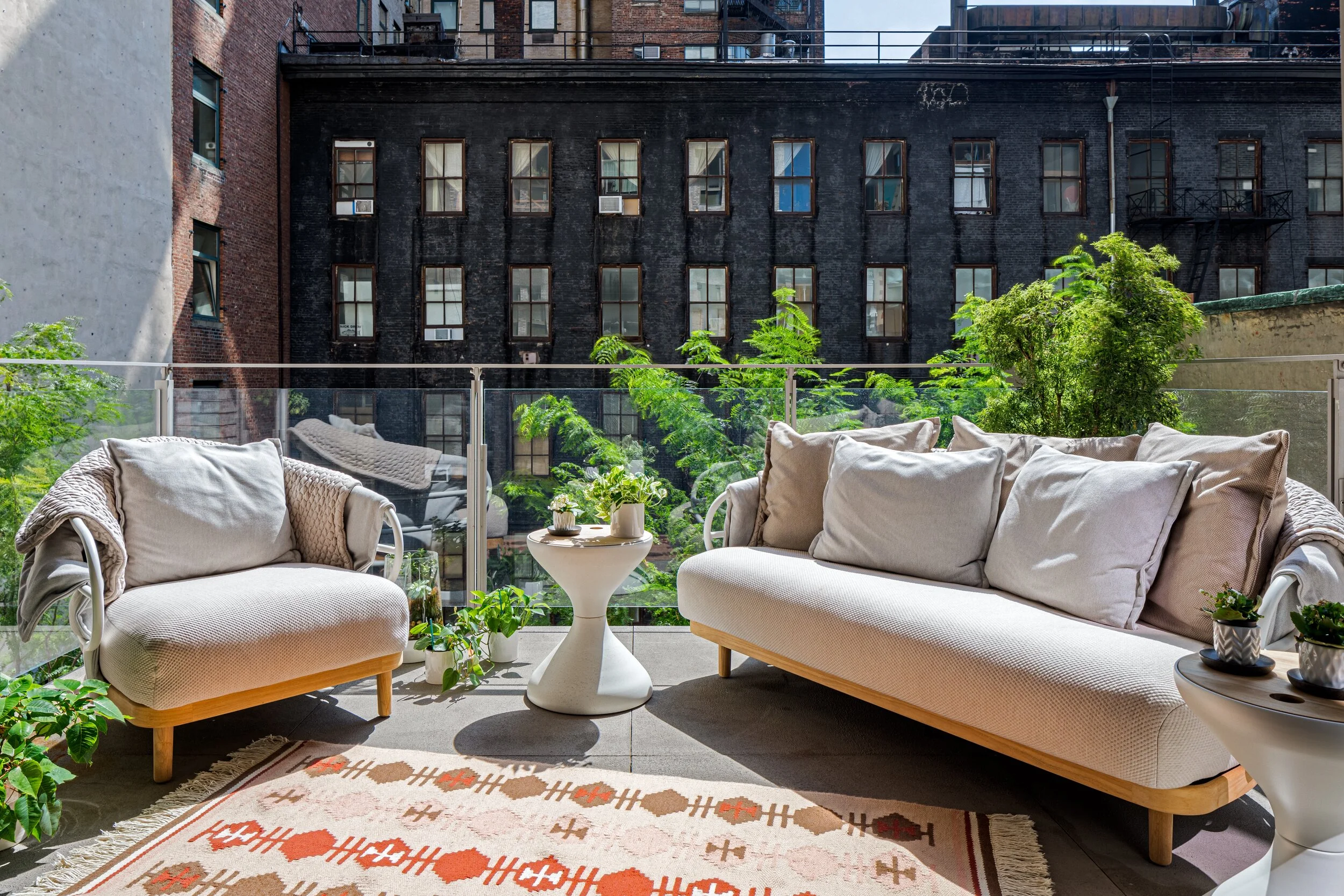 Located on a private, gated drive on iconic Great Jones Street, this award winning building by BKSK offers our clients an intimate, gracious lifestyle in the heart of Noho. Working with impeccable existing features, we renovated our client's 2k sq feet, 3 bedroom, 2.5 bath (2 ensuites) apartment which enjoys soaring 10' ceilings and a 125 sq ft private balcony. The space also includes 2 large, custom walk-in closets + 4 other closets, and in-unit washer/dryer. The space features a custom Arclinea kitchen with Gaggeneu & Miele appliances, direct elevator entrance, warm, teak bath details with steam shower and marble vanities. We brought in home automation for lighting, music & motorized shades. On-site amenities include an attended lobby, private gym, yoga studio, massage room, pool, hot tub & steam room, bike storage & storage unit. Our clients challenged us to go outside of our signature BS/D organic modernist style and instead wanted to emulate the feeling of a beautiful Brazilian home reminiscent of the one the lady of the house grew up in, but with updated vibes and a focus on entertaining. We sourced primarily authentic vintage handmade Brazilian pieces and landed some really incredible finds! The one word that comes to mind to describe the design of this home is: Collected. There is history behind every element we procured. We favored spiritual values and focused on our carbon footprint and the impact it had on the home. 85% of the pieces in the space are vintage, with some elements dating back to the early 19th century and into the early 70's. The remaining 15% are pieces from local artisans and makers in the Tri-state area - keeping to our focus on environmental and economic sustainability. Focused on the spiritual aspect of design, we choose to stick with earth tones while infusing colors often seen in Brazlian cultural, think orange, burnt reds and blues. There is harmony between each room, pulling layers from color and texture, if even in a subtle way.